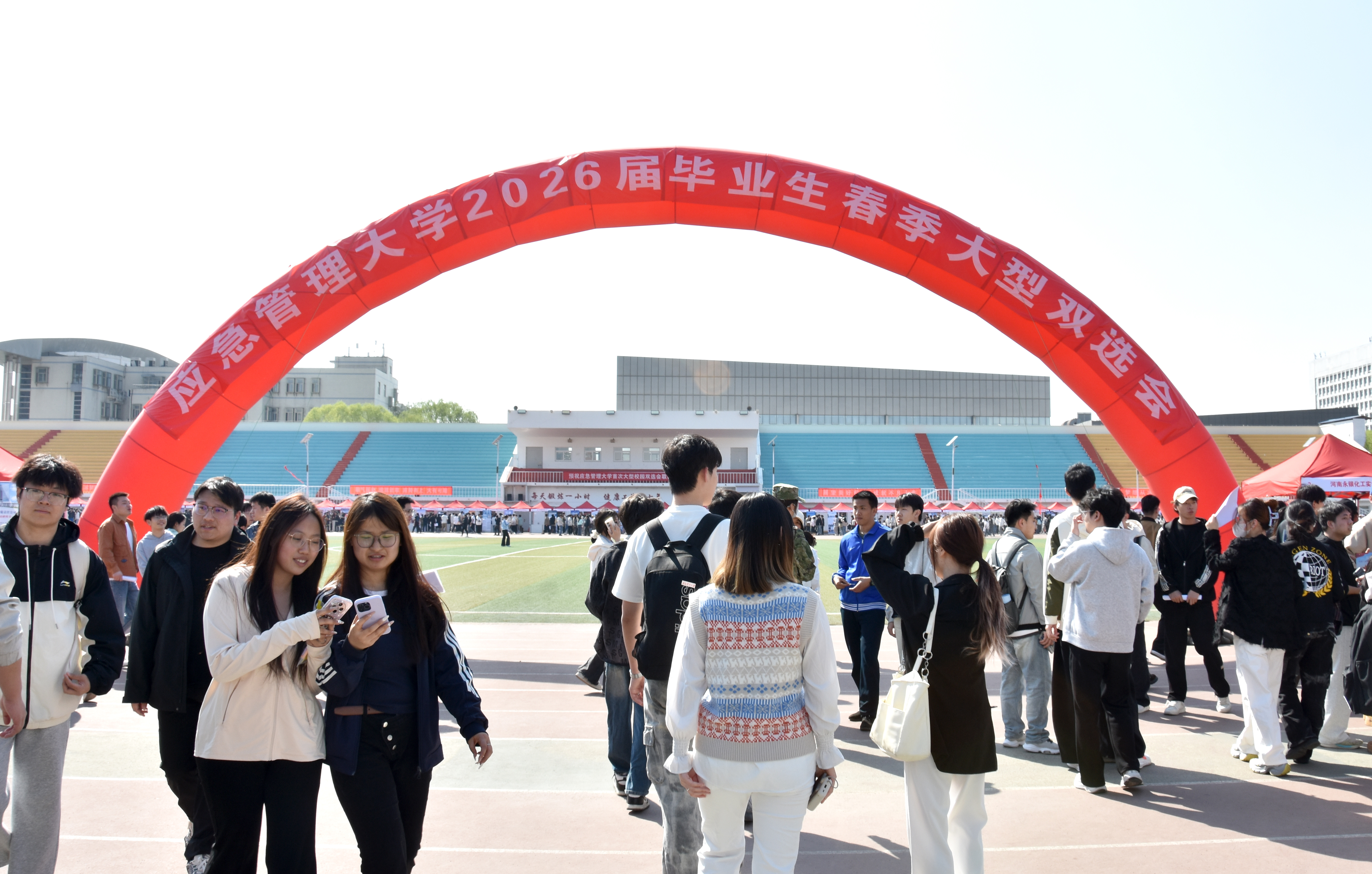 头条关注春风送岗 应急聚才——学校举办2026届毕业生春季大型校园双选会4月1日下午,学校在田径场举办2026届毕业生春季大型校园双选会。校党委副书记、校长任云生,党委常委、副校长洪利深入双选会现场,实地调研招聘情况,与用人单位、求职毕业生亲切交流,指导就...