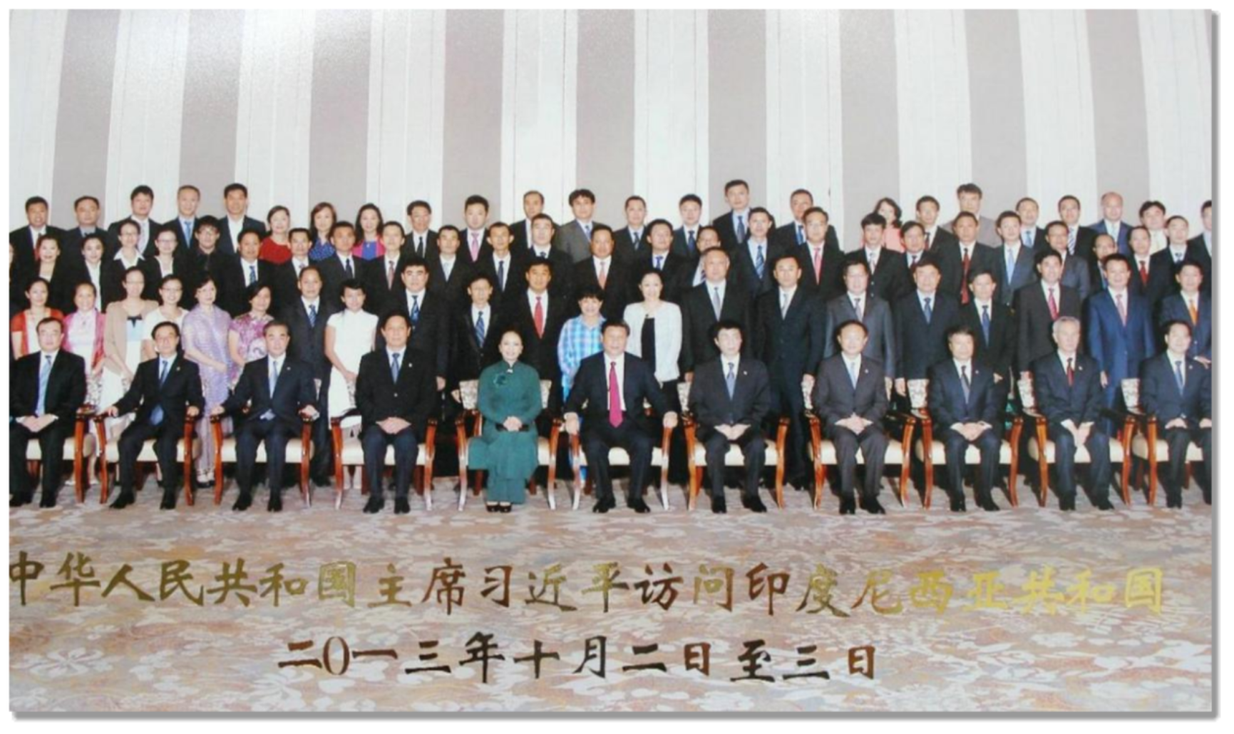 2013年10月3日,习近平总书记出访印尼,学校外派教师代表檀节霞等参加接见并合影留念