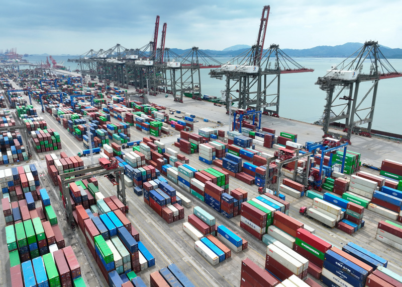 这是2024年10月15日拍摄的中国(福建)自由贸易试验区厦门片区集装箱码头(无人机照片)。新华社记者 姜克红 摄