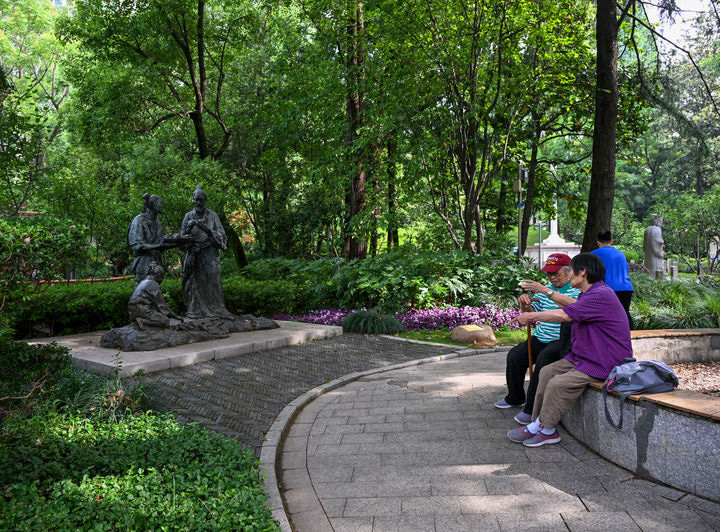 市民在位于上海徐家汇的光启公园休息(2025年5月17日摄)。(新华社记者 陈朔/摄)
