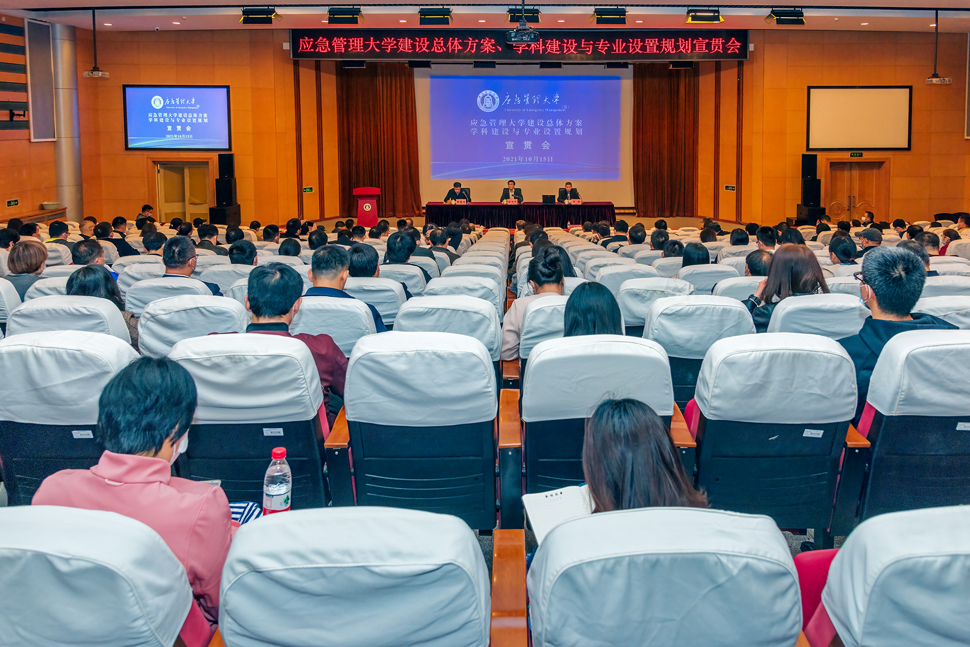 洪利从应急管理大学(筹)办学基础、总体要求、主要任务、“十四五”重点工程等四个方面对《方案》进行了详细解读,重点强调了大学的办学理念、办学定位、发展目标以及建设三高地、两中心、一智库的主要任务,对各教学单位规划好未来的发展方向与定位、发展任务与路径、发展目标与治理体系建设等具有很强指导作用。