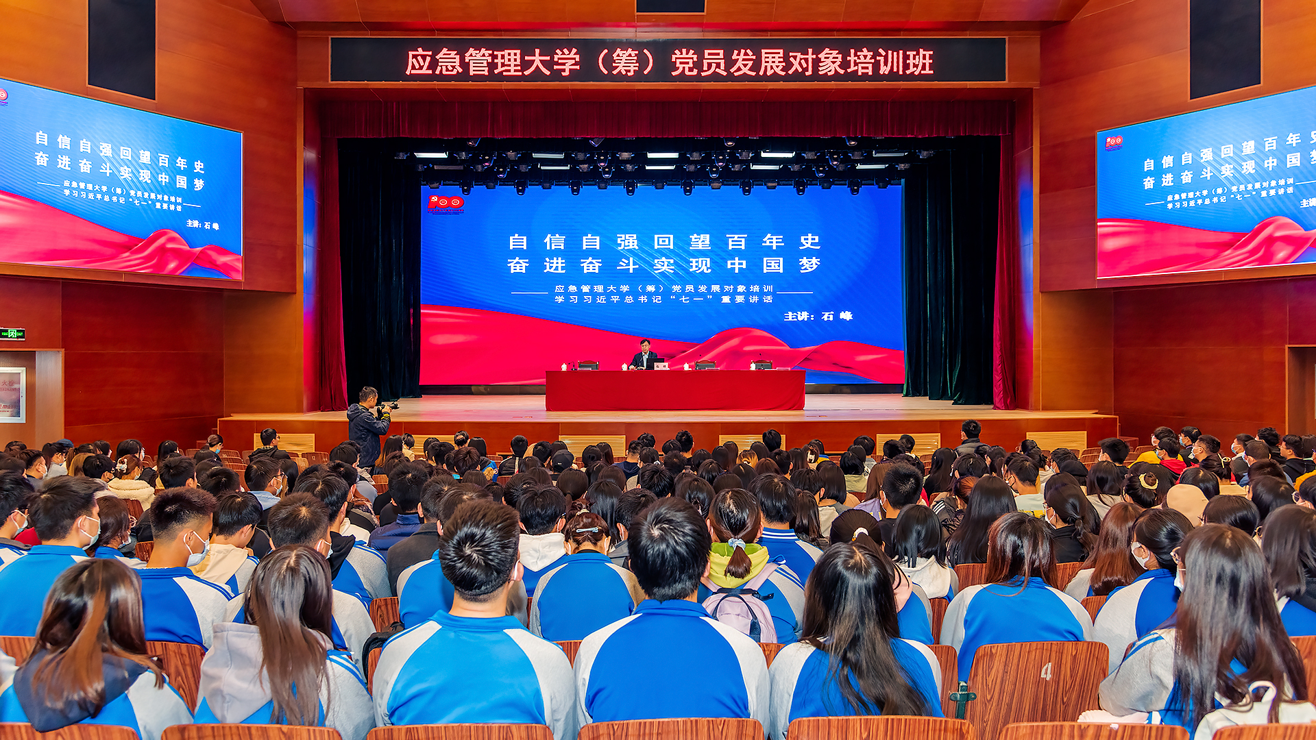 石峰以“自信自强回望百年史 奋进奋斗实现中国梦”为题讲开班第一课。他系统梳理了习近平在中国共产党成立100周年大会上重要讲话的逻辑框架和主题主线,从七个“新”的不同角度,深入解读了讲话的重点亮点;通过宏大的全球视野,对中外历史发展进行比较,回顾了党的百年奋斗历程和伟大历史成就,鼓励青年学子自信、爱国、奋进,要求大家在爱国爱民、锤炼品德、勇于创新和实学实干中增强本领、奋进奋斗,从百年党史中汲取无穷力量,不懈努力实现我们的大学梦、中国梦。