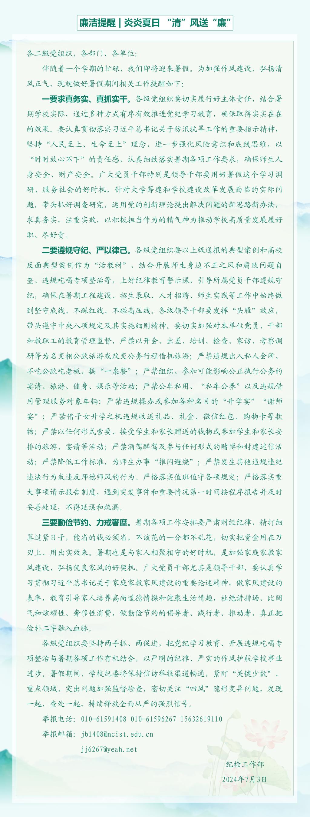 廉洁提醒|炎炎夏日“清”风送“廉”