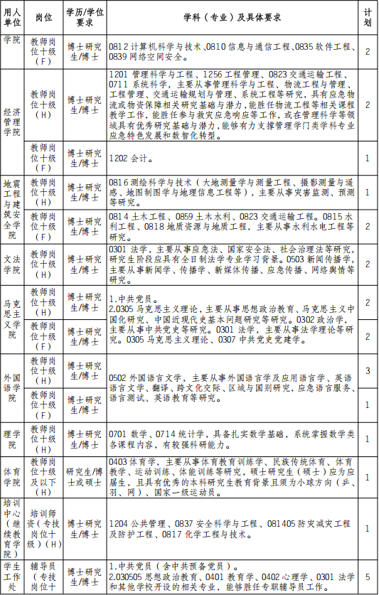 为深入贯彻总体国家安全观,坚决贯彻落实习近平总书记关于“大力培养应急管理人才,加强应急管理学科建设”重要指示精神,推进国家应急管理体系和能力现代化,应急管理部党委决定组建应急管理大学。结合工作实际,2025年学校面向社会公开招聘各类教师(不含常年引进的高层次人才)56名,诚挚邀请海内外优秀人才加盟。