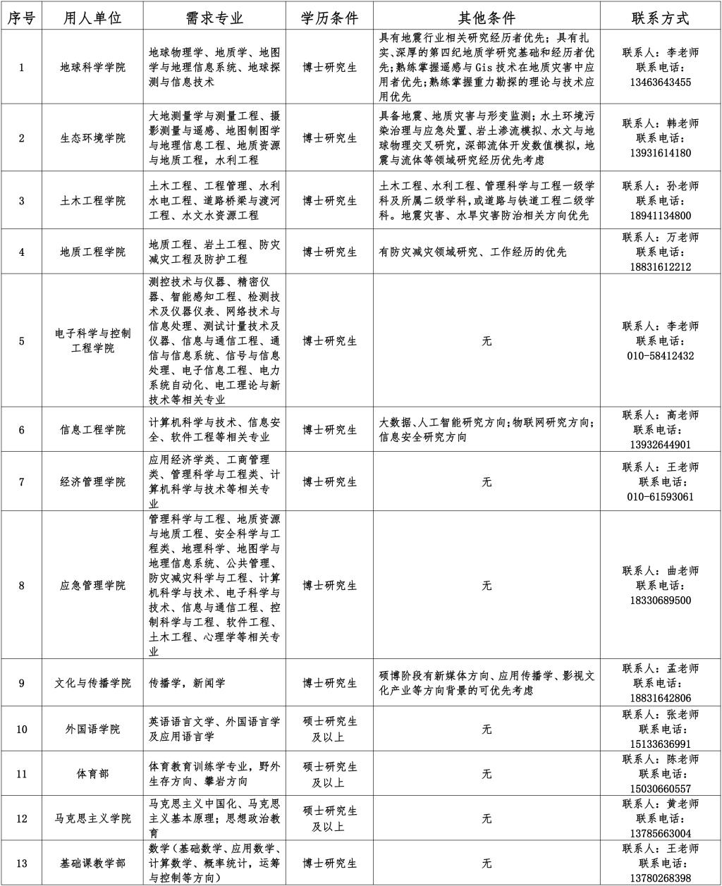 地址:河北省三河市燕郊高新区学院街465号应急管理大学(筹)人事处